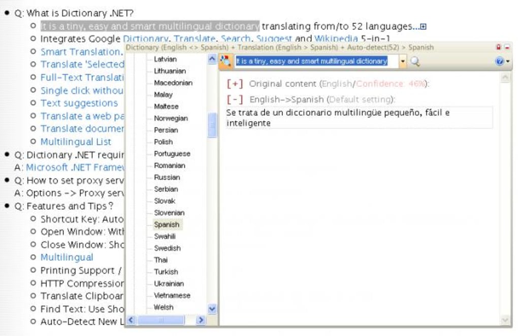 Dictionary.NET makes use of the technology behind Google Translator to offer you instant translations between more than 50 different languages, in all possible combinations. The program is meant to detect the languages automatically, though I have to say this feature didn’t work that well for me.