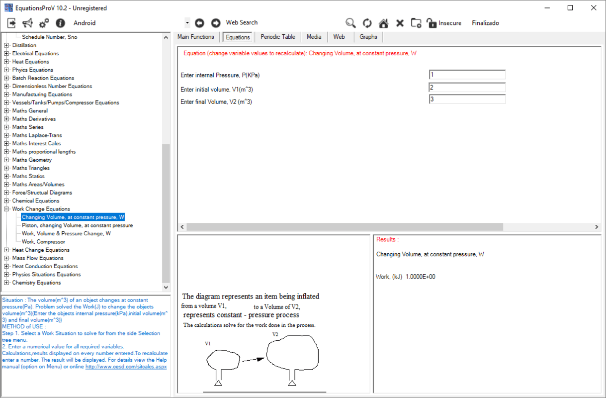 With EquationsPro we will also be able to generate complete graphs automatically making use of the information that we have entered to solve the different problems and also a complete web browser from which we will be able to consult any type of information without having to exit the program.